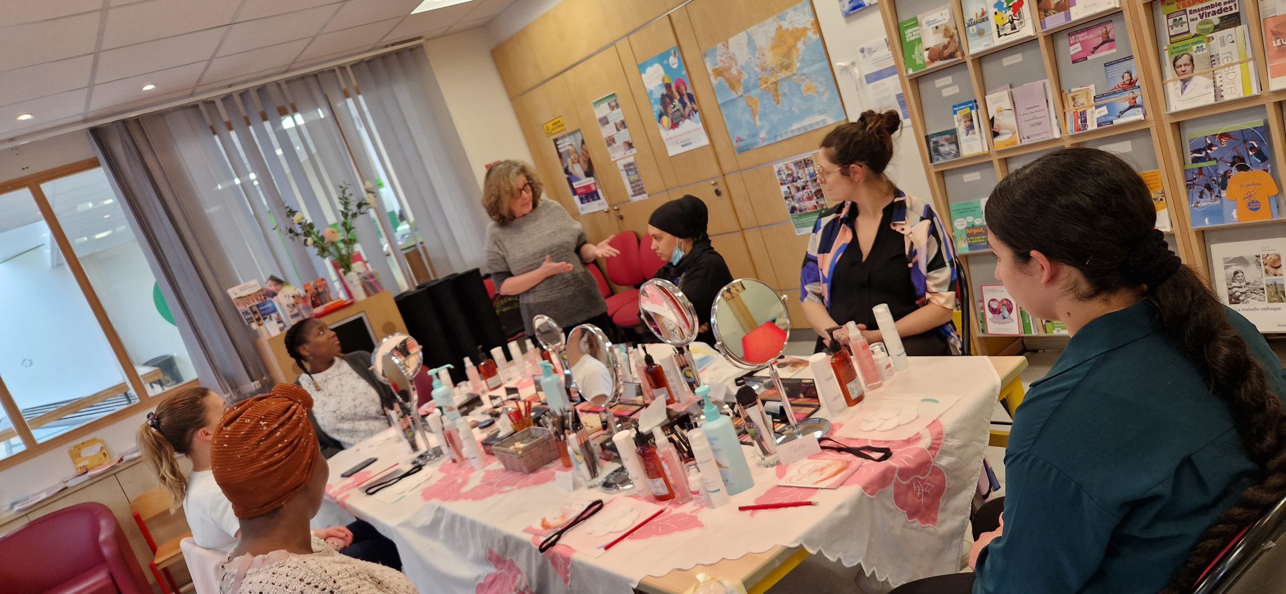 C’est l’occasion pour elles de vivre des moments de douceur, de bien-être en toute convivialité. Elles se ressourcent pendant 2 heures autour du soin et du maquillage. L’animation leur permet d’apprendre à reproduire les différents gestes de détente et de mise en beauté pour elle même.